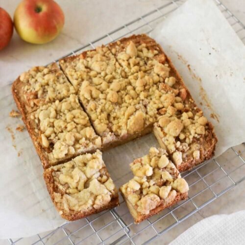 If you love apple crumble but want something you can actually pick up with your hands, these apple crumble cookie bars are going to be your new favourite bake. Imagine a soft and chewy cookie base, topped with juicy homemade stewed apples, and finished with a buttery, crunchy crumble topping. It’s basically autumn in bar form – cosy, spiced and SERIOUSLY moreish.