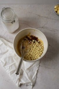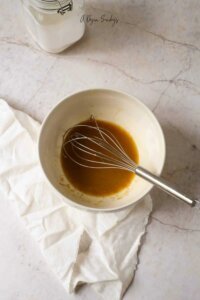 - Melt the butter in a small saucepan. In a large bowl, whisk together the melted butter, caster sugar, and light brown sugar until smooth and combined.