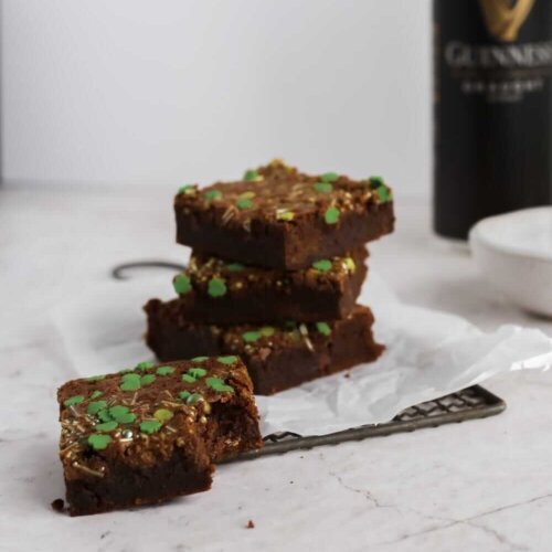 These simple chocolate brownies have a slight hint of Guinness Irish stout and are a soft, fudgy treat perfect for St Patrick’s Day (or any other day when you fancy one). Like most brownie recipes, this is a quick and easy recipe, with the only extra work being to reduce the Guinness down in a saucepan before adding to the mixture.