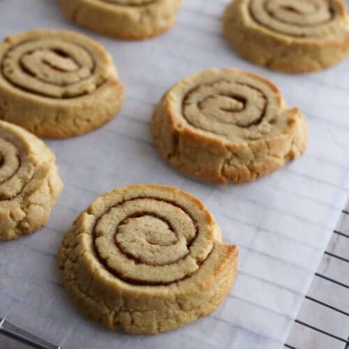 These cinnamon swirl cookies are best stored at room temperature in an airtight container and should keep for up to a week.