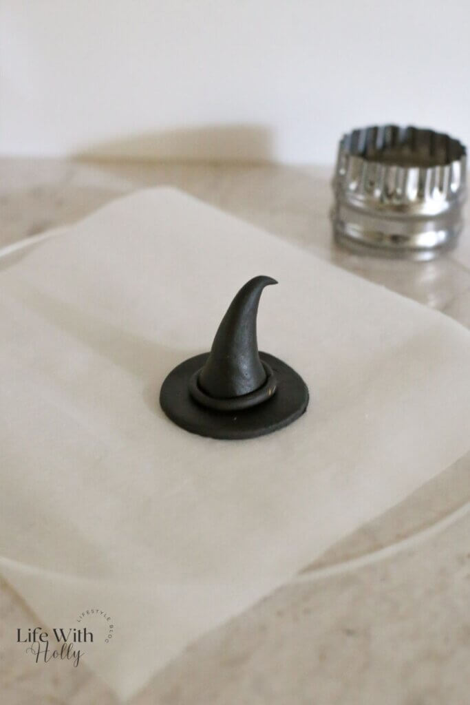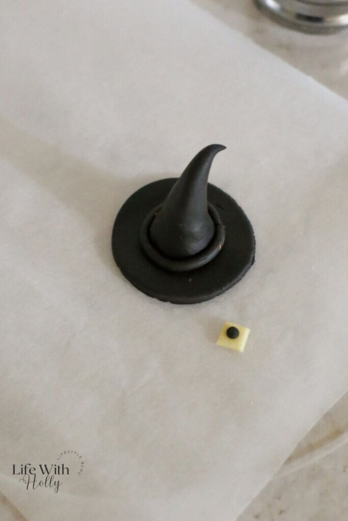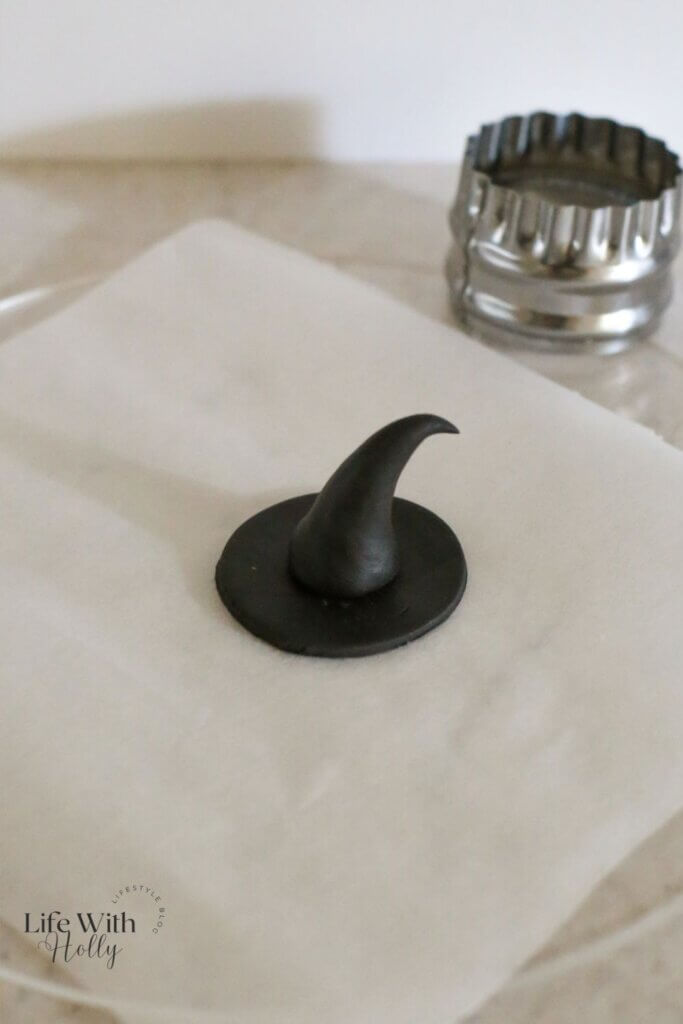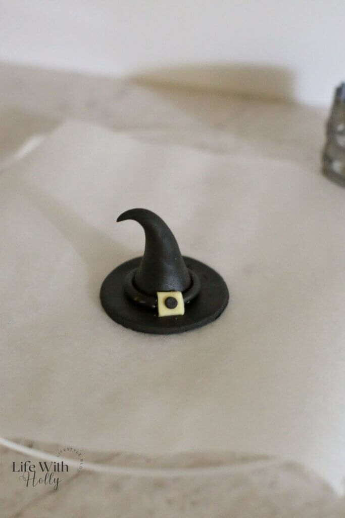 You can change the colour of the hatband by using different coloured fondant – try purple, orange or green for a traditionally spooky witch hat!