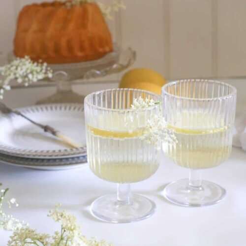 One of my favourite things about summer is the wildflowers. Our lane at the back of the house is full of them and it’s lovely to see the butterflies and bees using them. We’re lucky to have an elderflower tree there, and every year I like to make some elderflower syrup. I use this syrup on cakes (it adds a lovely floral note to a lemon cake like this lemon and elderflower cake recipe) or in summer drinks. It’s delicious in a glass of prosecco.