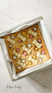 Easter-Inspired Goodness – The Mini Eggs and Malteser Bunny treats make these cookie bars extra special, with bursts of chocolate and candy in every bite. Perfect for a springtime treat!