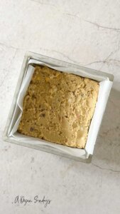 Preheat your oven to 350ºF / 175ºC and grease and line a 8×8” square cake tin.
