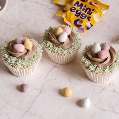 These cupcakes are made with an easy vanilla cupcakes recipe, vanilla buttercream, chocolate buttercream and, of course, the Mini Eggs. You may want to buy extra Mini Eggs as they’re very moreish!