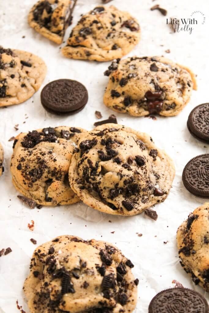 For an extra cookies-and-cream crunch, roll each dough ball in more crushed Oreos before baking. Place them on your lined baking sheet, spaced about 3 inches apart, and bake for 8-10 minutes at 175°C (350°F). The edges should be just turning golden while the centres still look soft.